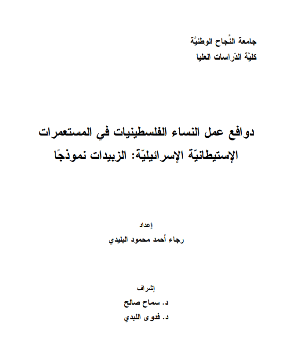 دوافع عمل النساء الفلسطينيات في المستعمرات الإسرائيلية: الزبيدات نموذجاً