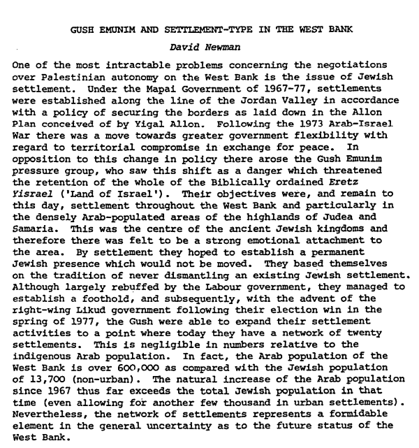 غوش إيمونيم والمستوطنات في الضفة الغربية (بالإنجليزية فقط)