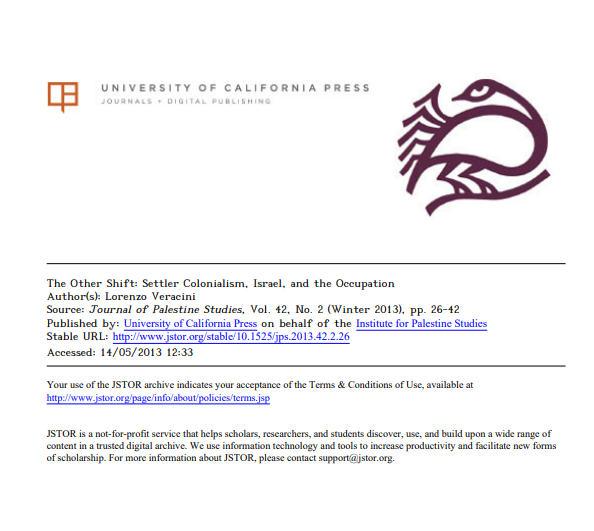 author: Journal of Palestine Studies, Lorenzo Veracini