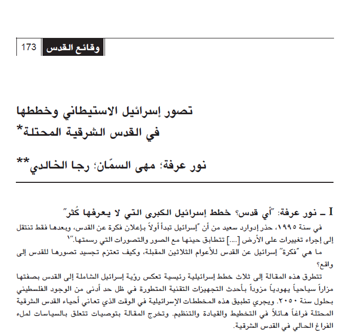 Israel's settlement vision and plans in occupied East Jerusalem (Arabic Only)