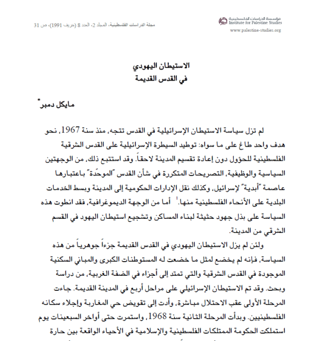 Israeli Settlement in the Old City of Jerusalem (Arabic Only)