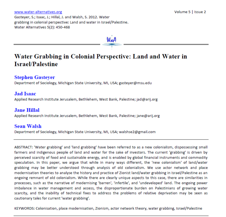 (Journal) Water Grabbing in Colonial Perspective: Land and Water in Israel/Palestine