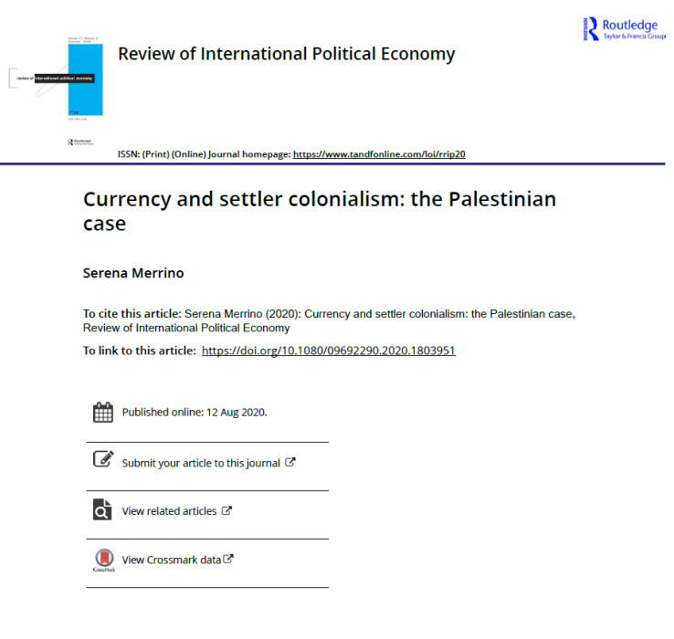 (Journal) Currency and settler colonialism: the Palestinian case, Review of International Political Economy