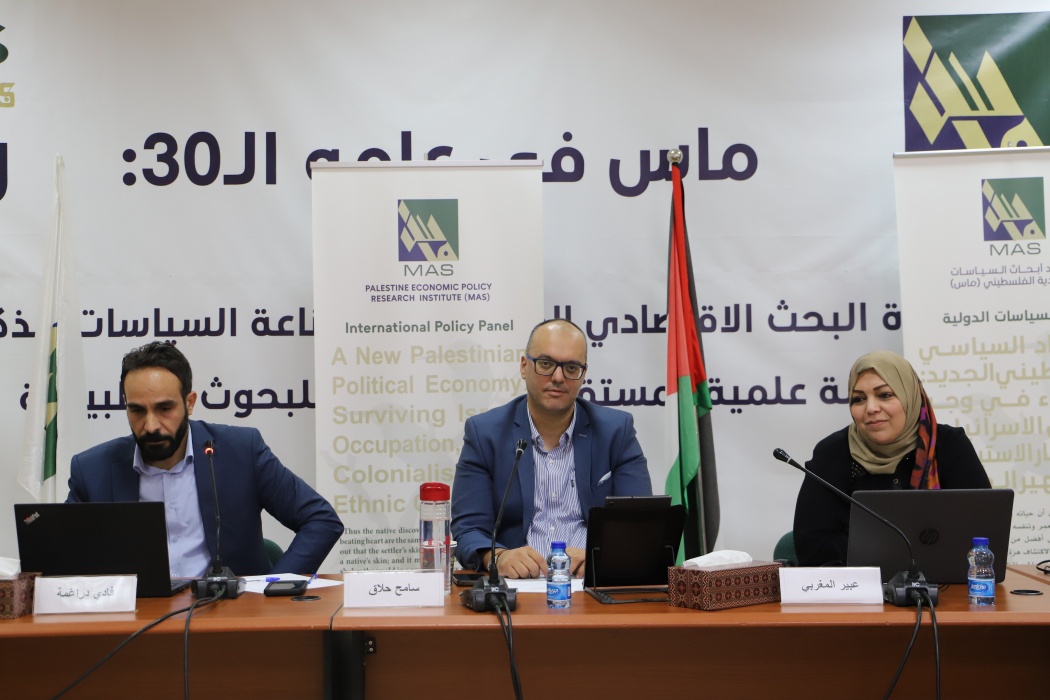 The background paper was prepared by MAS researcher Fadi Daraghmeh with support from the Heinrich Böll Foundation-Palestine and Jordan. Remarks and discussant interventions were delivered by Ms. Abeer Al‑Mughraiby, Director of Planning at the General Directorate of Studies and Research at the Ministry of Labor, and Dr. Mazen Al‑Ajla, an economist from the Gaza Strip.