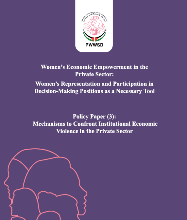 Over the past five months, the Palestine Economic Policy Research Institute (MAS) has prepared a detailed study for the Palestinian Working Woman Society for Development (PWWSD), titled “Women’s Economic Empowerment in the Private Sector: Women’s Representation and Participation in Decision-Making Positions as a Necessary Tool.” In its six chapters, the study covers a wide range of topics related to women’s empowerment, such as women’s participation in the Palestinian labor market, their work in the informal sector and unpaid care work, in addition to their participation in decision-making positions. The study also included a descriptive and diagnostic analysis of women’s participation in the labor market, a qualitative analysis of women’s entrepreneurship and a quantitative