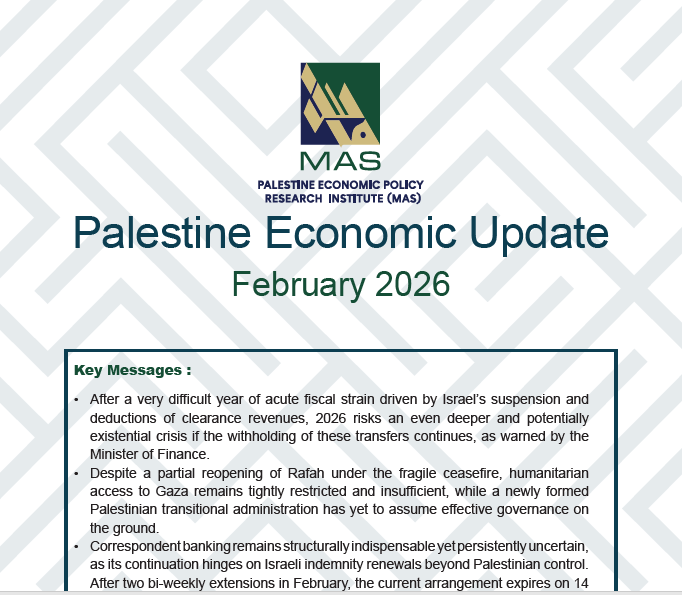 - Correspondent banking remains structurally indispensable yet persistently uncertain, as its continuation hinges on Israeli indemnity renewals beyond Palestinian control. After two bi-weekly extensions in February, the current arrangement expires on 14 March 2026, with no clarity on further renewal.