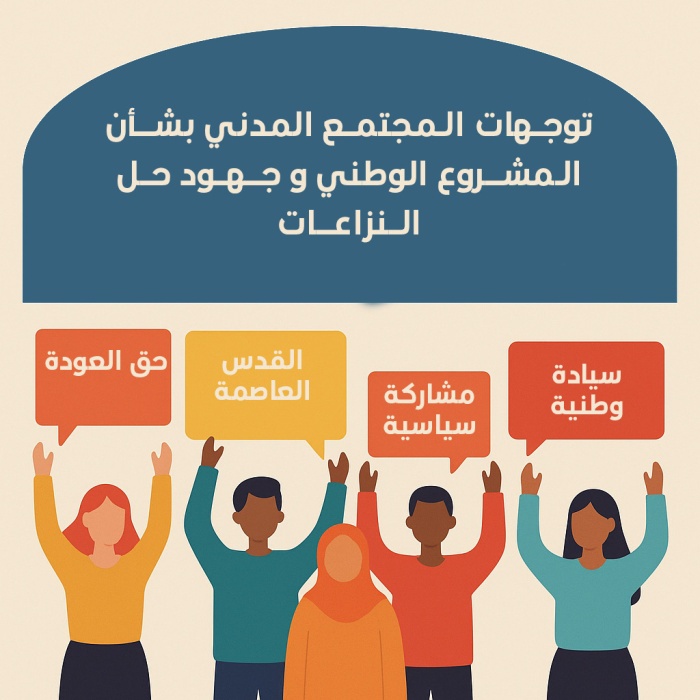 عرض التوصيات والمطالب السياسية التي تم صياغتها من خلال نهج تشاركي تصاعدي ومشاورات شعبية، بما يعكس كيفية تصور المجتمع المدني ومختلف مكونات المجتمع الفلسطيني للخطاب الوطني.
