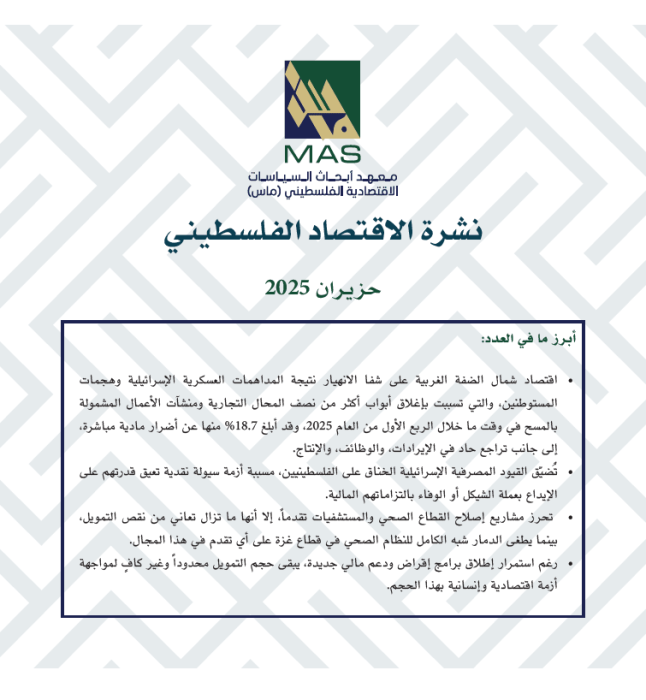 نشرة الاقتصاد الفلسطيني - حزيران 2025