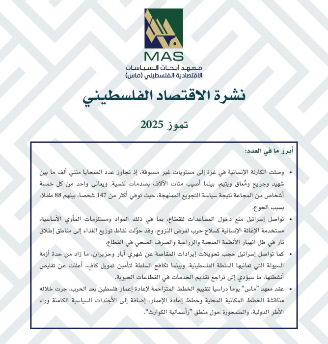 نشرة الاقتصاد الفلسطيني - تموز 2025