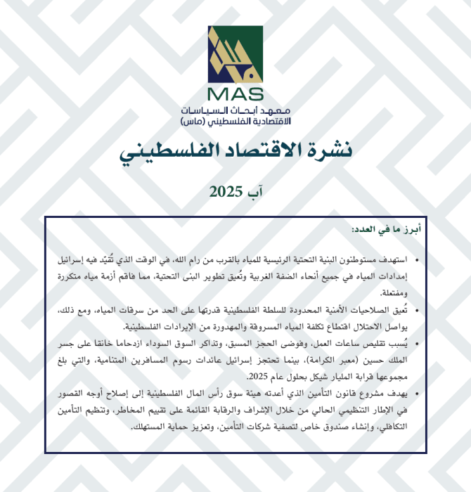 نشرة الاقتصاد الفلسطيني - آب 2025